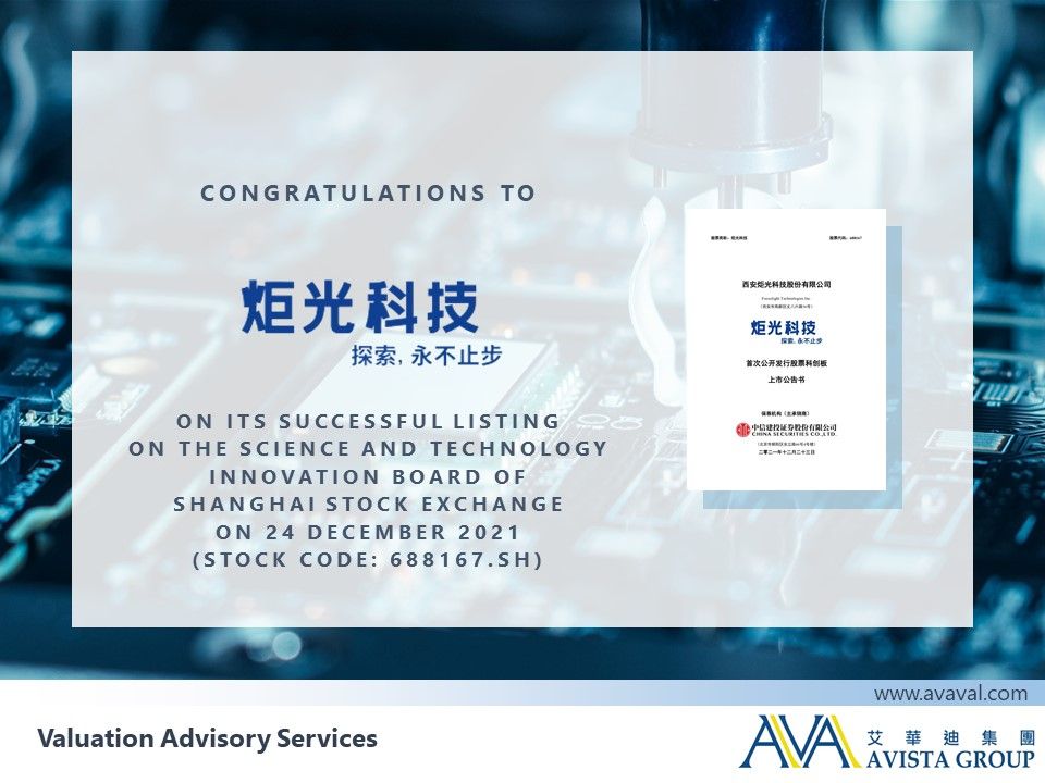 Focuslight Technologies Inc. (Focuslight) has been successfully listed on the Science and Technology Innovation Board (STAR) of the Shanghai Stock Exchange (SSE)on 24 December 2021. AVISTA Group is honored to be engaged in providing valuation services.