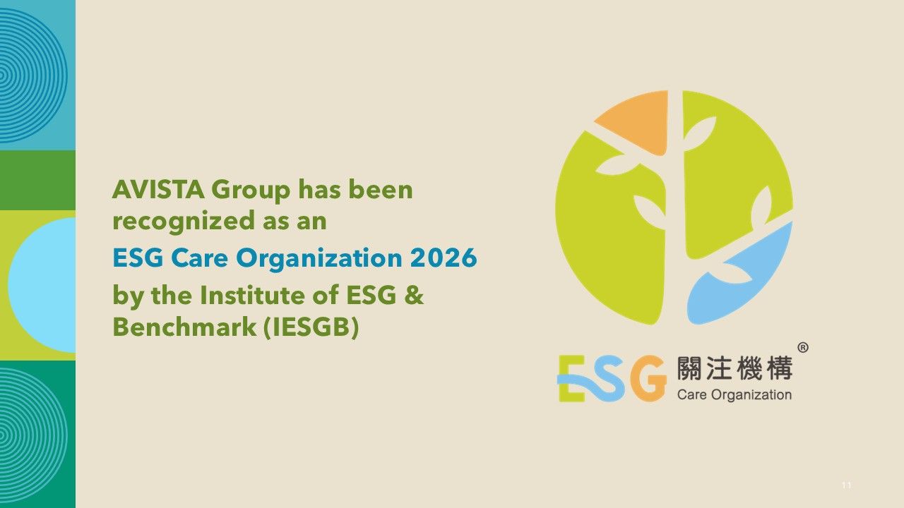 We are proud to announce that AVISTA Group has been recognized as an ESG Care Organization 2026 by the Institute of ESG & Benchmark (IESGB). This recognition highlights our ongoing commitment to environmental, social, and governance (ESG) excellence, as well as our dedication to promoting sustainable business practices and social responsibility. We are honored to be part of a community that values positive impact and responsible growth.