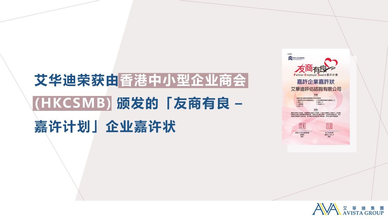 艾华迪很高兴荣获香港中小型企业总商会 (HKGCSMB) 颁发「2020友商有良嘉许企业嘉许状」,以表扬艾华迪积极为本地大专院校学生及毕业生提供实习及工作发展机会。
