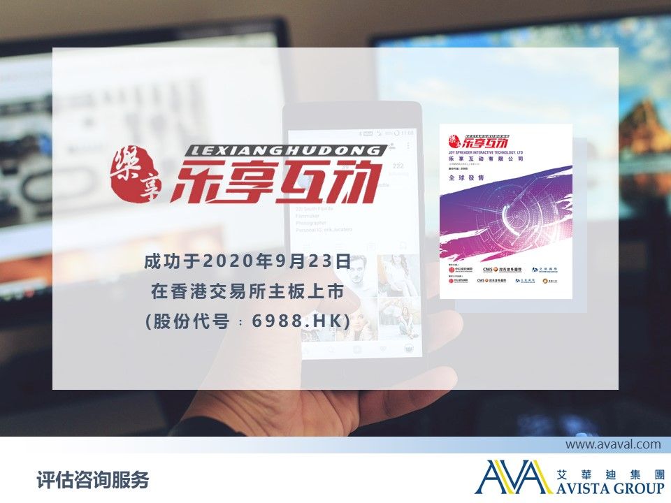 艾华迪集团在此恭贺乐享互动有限公司 (股份代号: 6988.HK) 成功于2020年9月23日在香港交易所主板上市。在此上市申请中,艾华迪集团很荣幸获公司委聘提供金融资产的公允价值评估服务。