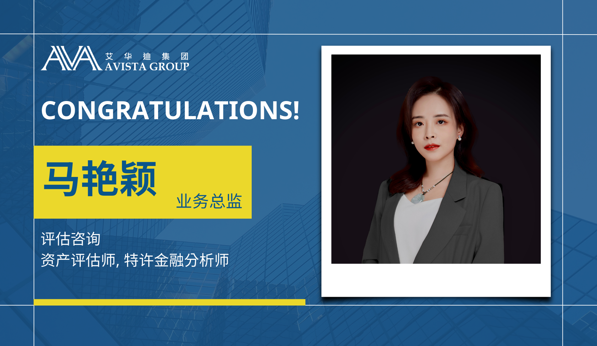 艾華迪集團在此恭賀馬艷穎女士晉升並擔任上海辦事處商業評估諮詢部業務總監職務
